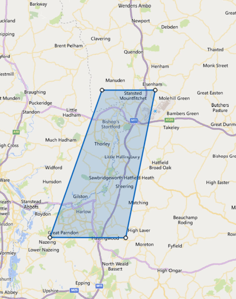 • Residential areas around Old Harlow and Church Langley